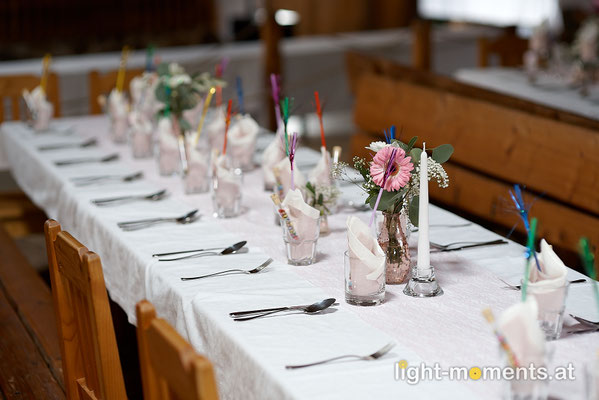Hier gibts ein paar Dekorationen die ins Auge gestochen sind. Genauso wie kleine Details für die Gäste. Auch wenn es nur Kleinigkeiten sind, so sind es doch die Details, welche einem bei einer Hochzeit in Erinnerung bleiben.